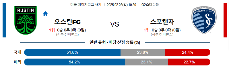 오스틴 대 스포팅 메이저사커 02월23일 맞대결 생중계, 스포츠중계, 스포츠분석