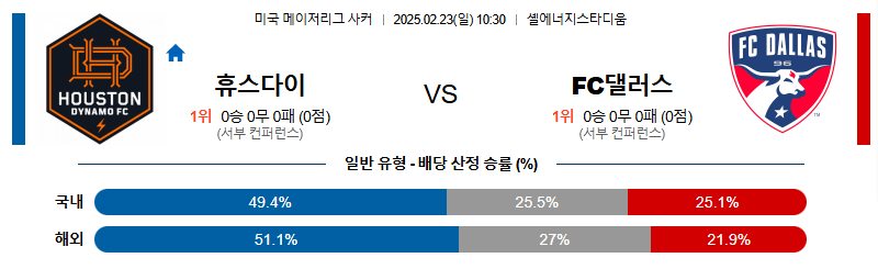 휴스턴 대 댈러스 메이저사커 02월23일 맞대결 생중계, 스포츠중계, 스포츠분석