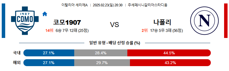 코모 대 나폴리 세리에A 02월23일 맞대결 생중계, 스포츠중계, 스포츠분석