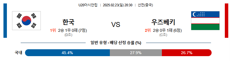 대한민국 대 우즈베키스탄 U20아시안컵 02월23일 맞대결 생중계, 스포츠중계, 스포츠분석