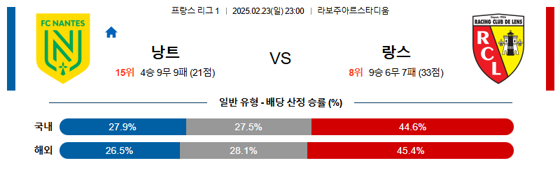 낭트 대 랑스 리그앙 02월23일 맞대결 생중계, 스포츠중계, 스포츠분석