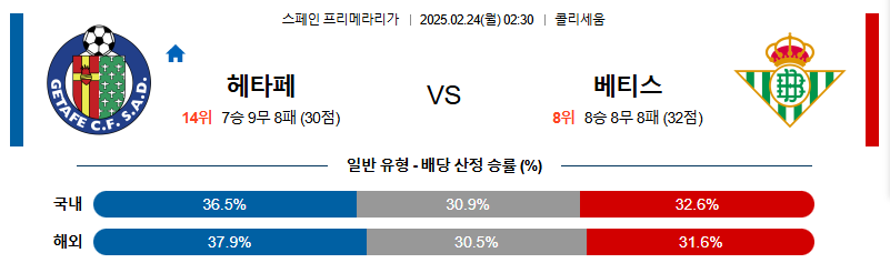 헤타페 대 베티스 라리가 02월24일 맞대결 생중계, 스포츠중계, 스포츠분석