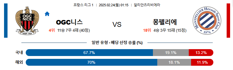 OGC니스 대 몽펠리에 리그앙 02월24일 맞대결 생중계, 스포츠중계, 스포츠분석