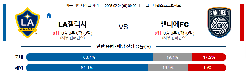 LA갤럭시 대 샌디에고 메이저리커 02월24일 맞대결 생중계, 스포츠중계, 스포츠분석