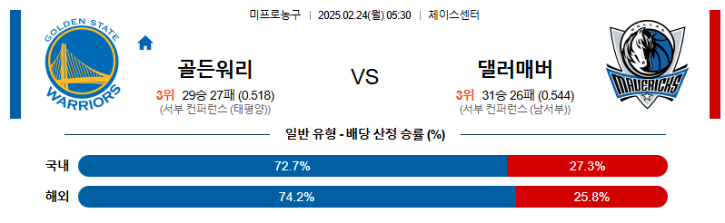 골든스테이트 대 댈러스 NBA 02월24일 맞대결 생중계, 스포츠중계, 스포츠분석