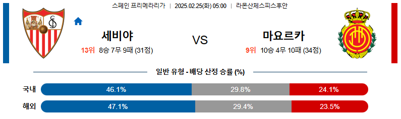 세비야 대 마요르카 라리가 02월25일 맞대결 생중계, 스포츠중계, 스포츠분석