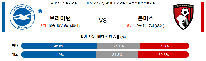 브라이턴 대 본머스 프리미어리그 02월26일 맞대결 생중계, 스포츠중계, 스포츠분석
