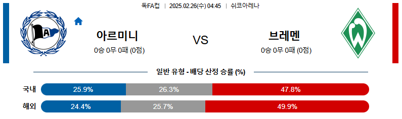 아르미니아 대 베르더브레멘 독일FA컵 02월26일 맞대결 생중계, 스포츠중계, 스포츠분석