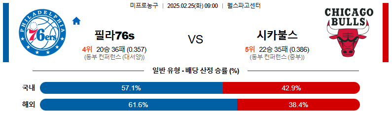 필라델피아 대 시카고 NBA 02월25일 맞대결 생중계, 스포츠중계, 스포츠분석
