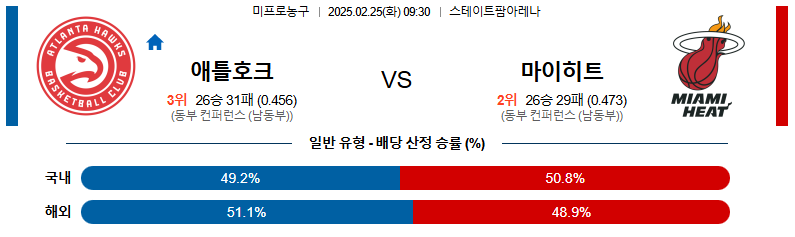 애틀란타 대 마이애미 NBA 02월25일 맞대결 생중계, 스포츠중계, 스포츠분석