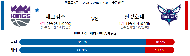 새크라멘토 대 샬럿 NBA 02월25일 맞대결 생중계, 스포츠중계, 스포츠분석