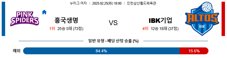 흥국생명 대 IBK기업은행 V리그(여) 02월26일 맞대결 생중계, 스포츠중계, 스포츠분석