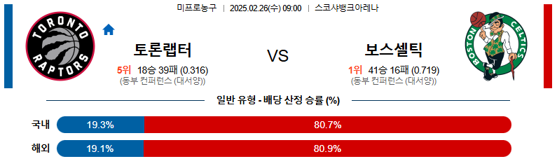 토론토 대 보스턴 NBA 02월26일 맞대결 생중계, 스포츠중계, 스포츠분석