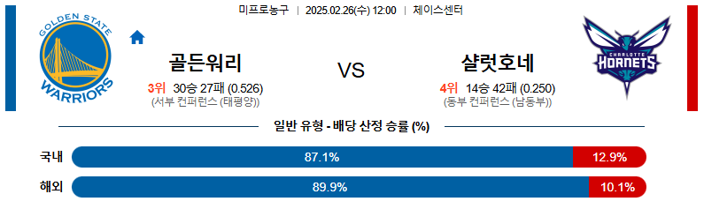 골든스테이트 대 샬럿 NBA 02월26일 맞대결 생중계, 스포츠중계, 스포츠분석