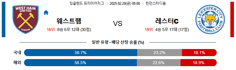 웨스트햄 대 레스터 EPL 02월28일 맞대결 생중계, 스포츠중계, 스포츠분석