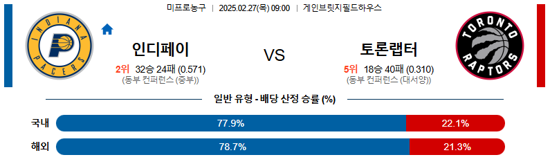 인디애나 대 토론토 NBA 02월27일 맞대결 생중계, 스포츠중계, 스포츠분석