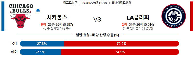 시카고 대 LA클리퍼스 NBA 02월27일 맞대결 생중계, 스포츠중계, 스포츠분석