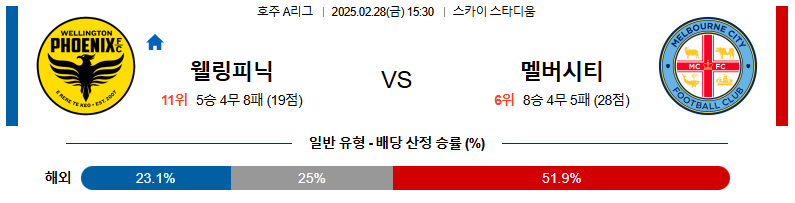 웰링턴 대 멜버른시티 호주A리그 02월28일 맞대결 생중계, 스포츠중계, 스포츠분석