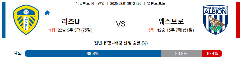 리즈유나이티드 대 웨스트브롬 잉글랜드챔피언쉽 03월01일 맞대결 생중계, 스포츠중계, 스포츠분석