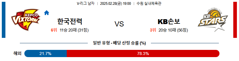 KB손해보험의 승리를 추천드립니다. 핸디캡 승리도 고려해볼 만한 선택입니다.