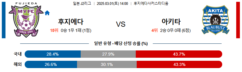 후지에다 대 아키타 J리그2 03월01일 맞대결 생중계, 스포츠중계, 스포츠분석