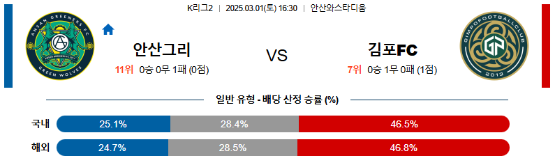 안산 대 김포 K리그2 03월01일 맞대결 생중계, 스포츠중계, 스포츠분석