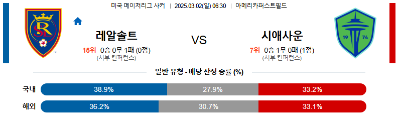 레알솔트레이크 대 시애틀사운더스 메이저리그사커 03월02일 맞대결 생중계, 스포츠중계, 스포츠분석
