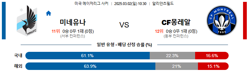 미네소타유나이티드 대 CF몽레일 메이저리그사커 03월02일 맞대결 생중계, 스포츠중계, 스포츠분석