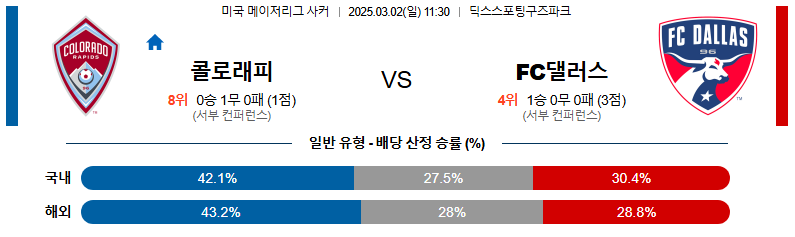 콜로라도래피즈 대 댈러스 메이저리그사커 03월02일 맞대결 생중계, 스포츠중계, 스포츠분석
