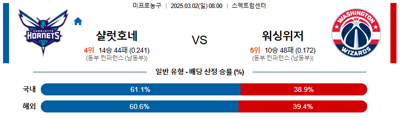 샬럿 대 워싱턴 NBA 03월02일 맞대결 생중계, 스포츠중계, 스포츠분석