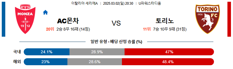 AC몬차 대 토리노 세리에A 03월02일 맞대결 생중계, 스포츠중계, 스포츠분석