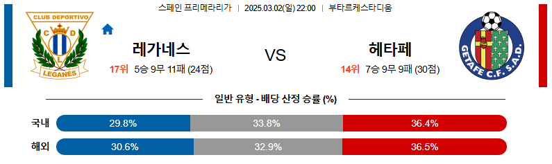 레가네스 대 헤타페 라리가 03월02일 맞대결 생중계, 스포츠중계, 스포츠분석