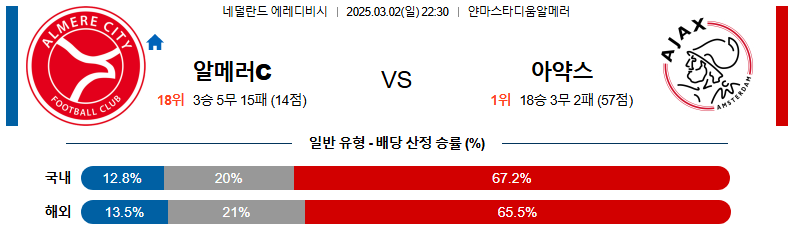 알메러시티 대 아약스 에레디비지에 03월02일 맞대결 생중계, 스포츠중계, 스포츠분석