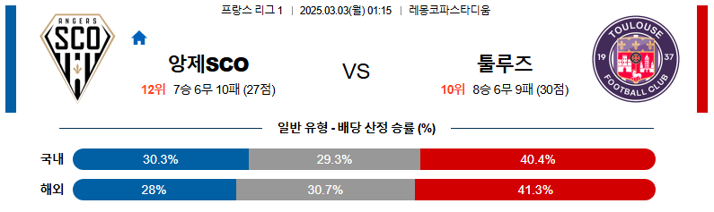 앙제 대 툴루즈 리그앙 03월03일 맞대결 생중계, 스포츠중계, 스포츠분석
