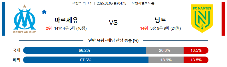마르세유 대 낭트 리그앙 03월03일 맞대결 생중계, 스포츠중계, 스포츠분석