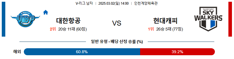 대한항공 대 현대캐피탈 V리그 03월02일 맞대결 생중계, 스포츠중계, 스포츠분석
