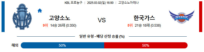 고양소노 대 대구한국가스 KBL 03월02일 맞대결 생중계, 스포츠중계, 스포츠분석