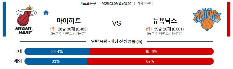 마이애미 대 뉴욕닉스 NBA 03월03일 맞대결 생중계, 스포츠중계, 스포츠분석