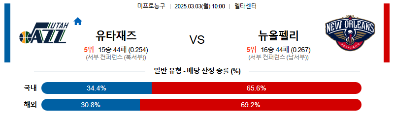 유타 대 뉴올리언스 NBA 03월03일 맞대결 생중계, 스포츠중계, 스포츠분석