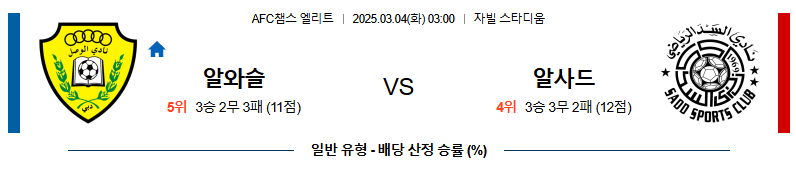알와슬 대 알사드 AFC챔스 03월04일 맞대결 생중계, 스포츠중계, 스포츠분석