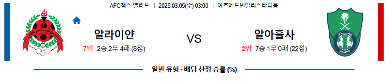 알라이얀 대 알아흘리 AFC챔피언스리그 03월05일 맞대결 생중계, 스포츠중계, 스포츠분석