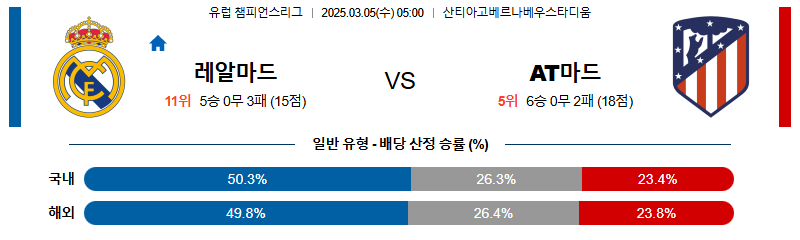 레알마드리드 대 아틀레티코마드리드 UEFA챔피언스리그 03월05일 맞대결 생중계, 스포츠중계, 스포츠분석