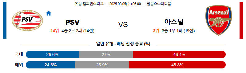 PSV 대 아스날 UEFA챔피언스리그 03월05일 맞대결 생중계, 스포츠중계, 스포츠분석