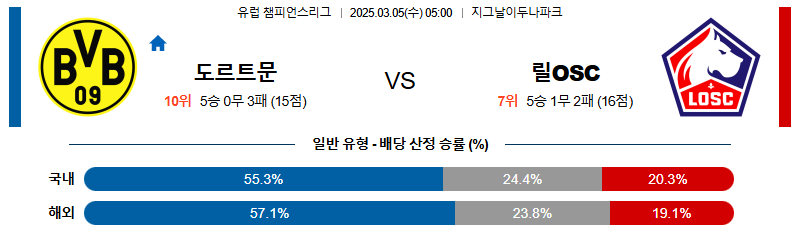 도르트문트 대 릴OSC UEFA챔피언스리그 03월05일 맞대결 생중계, 스포츠중계, 스포츠분석