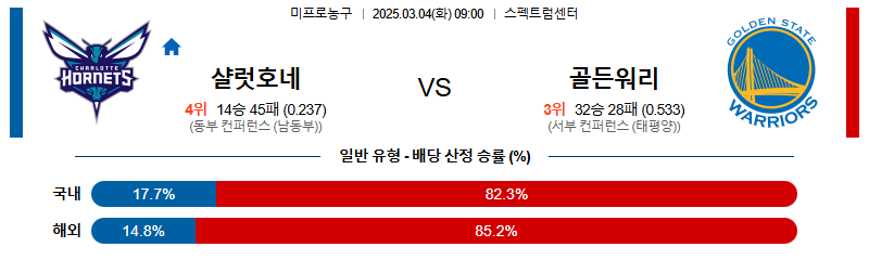 샬럿 대 골든스테이트 NBA 03월04일 맞대결 생중계, 스포츠중계, 스포츠분석