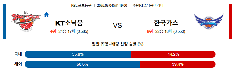 KT 대 가스공사 KBL 03월04일 맞대결 생중계, 스포츠중계, 스포츠분석