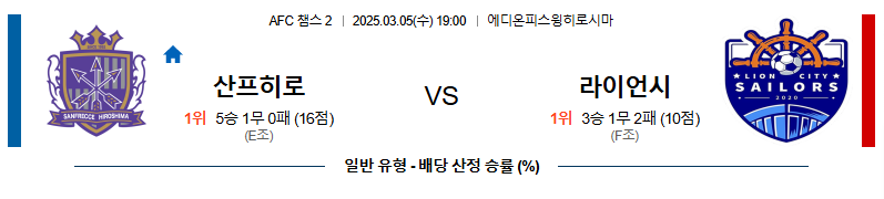 라이언 시티 (AFC 챔피언스리그 1위 / 최근 5경기 5연승)