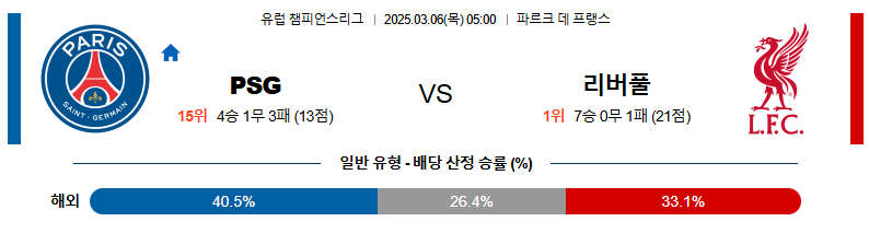 PSG 대 리버풀 UEFA챔스 03월06일 맞대결 생중계, 스포츠중계, 스포츠분석