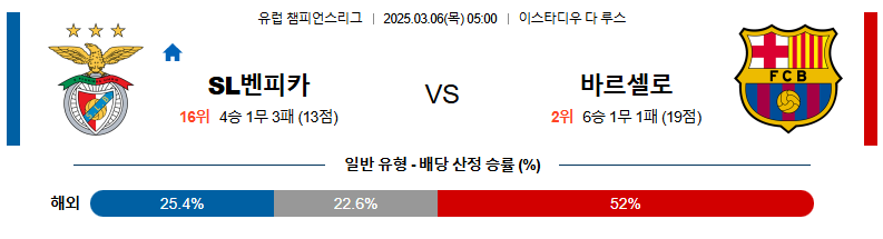 벤피카 대 바르셀로나 UEFA챔스 03월06일 맞대결 생중계, 스포츠중계, 스포츠분석