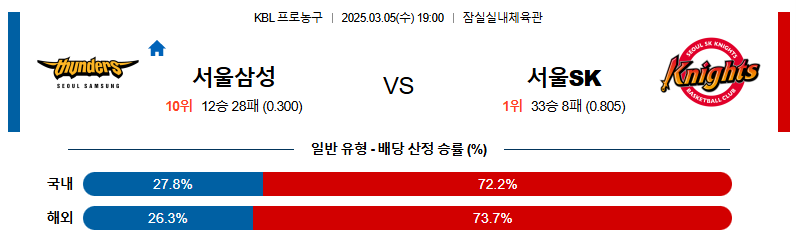 서울삼성 대 서울SK KBL 03월05일 맞대결 생중계, 스포츠중계, 스포츠분석
